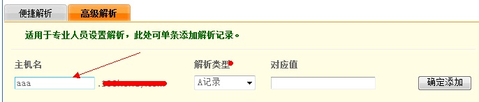 AAA就是他的2級域名 做下對應值 解析 例如 1.1.1.1
